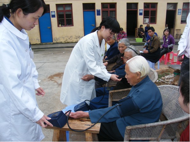 2009年3月2日,路桥义工健康服务支队队员、台州市博爱医院医护义工在路桥三爷姆福利院为孤寡老人免费体检、诊疗。