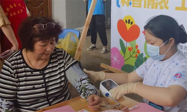医护人员细心地为老人测量血压血糖,耐心地为老人们讲解控制血压血糖的注意事项。对血压和血糖偏高者给予饮食、运动等方面的建议,提醒血压和血糖偏高患者要按时吃药。