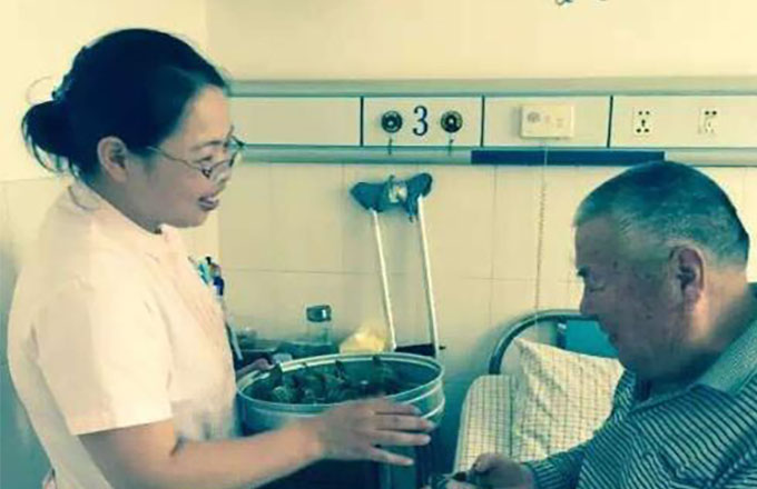 护士包粽子送住院病人
