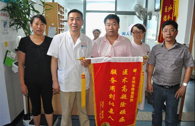 本站讯(记者陈梦)7月19日上午,“平民英雄”陈立兴乘来院复查之际,将写着“医术高超除顽疾,服务周到似亲人”等三面锦旗送到我院,分别送到院长孙捷、高压氧脑复苏中心主任王万里及十病区护士长倪媚媚的手中...2012-07-20433 -