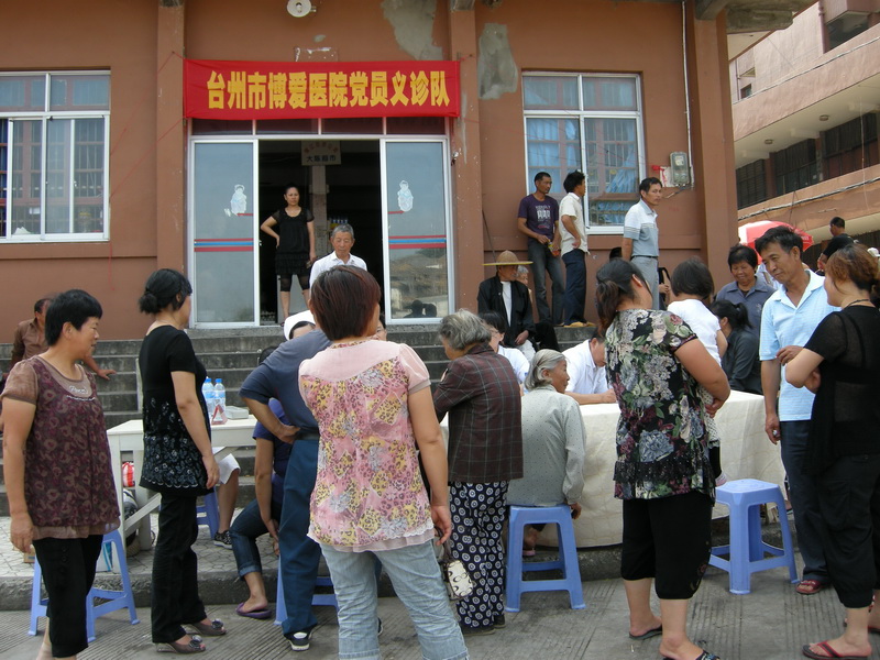 两天来,当我院“党员医疗队”来到大陈岛时,已有不少得知消息的乡亲们等候在这里。来不及歇歇脚、顾不上喝口水,在“博爱医院党员下乡义诊”的鲜红横幅下,来自博爱医院8位医护人员立即投入义诊。