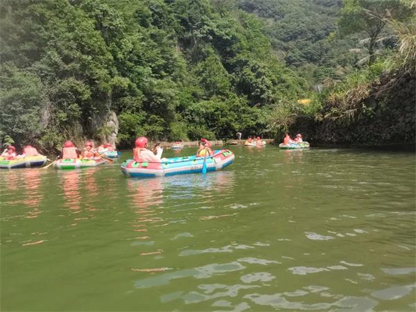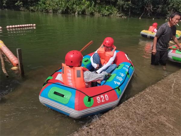 飞腾峡漂流飞瀑腾跃,峡深谷秀,水源源于海拔900米高山清泉,河道全程约3公里总落差128米,时而惊险、时而平缓,约60分钟的快乐航程,让全体职工感受数十次的腾跃起落,刺激不断,尖叫不停。