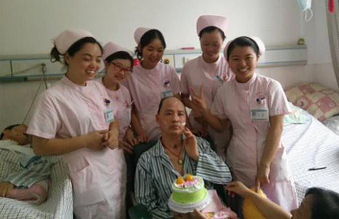 白衣天使为苏醒的植物人庆生