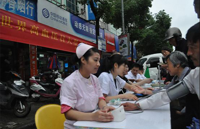 本站讯(记者蔡伟标陈梦)5月17日,在路桥区新桥镇新大街上,台州市博爱医院与新桥镇卫生院的医护人员正在给市民进行义诊服务。 当日为第七个世界高血压日,今年的主题是“健康血压,健康心跳。”为此,台州市博爱医院与新桥镇卫生院联手组织了资深内科专家,针对高血压及高血压引起的相关疾病对群众进行一系列义诊活动,指导群众科学、有效地预防高血压或控制血压,减少并发症。 2013-05-172013-05-17357 -