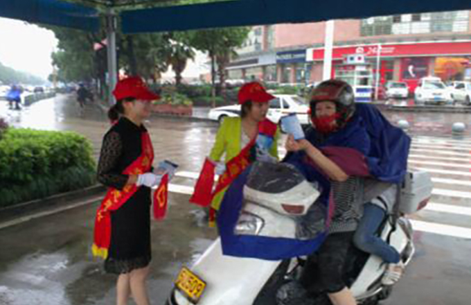 本站讯(通讯员周军辉)随着新交通规则对非机动车及行人违反交通处罚规定的实施,5月16日下午,我院团委组织史国平、赵张萍、项秀燕、王利、王永祥、夏亚萍等六名团员青年在鑫都和泰隆两处十字路口开展了“文明交通”志愿者劝导服务。 在本次活动开展中,博爱团员青年们共发放新交通规则宣传册数百张、劝导和阻止行人及非机动车闯红灯现象100余人次,扶行动不便的老人或盲人过马路15人次,为群众指路30人次。 通过本...2013-05-17267 -