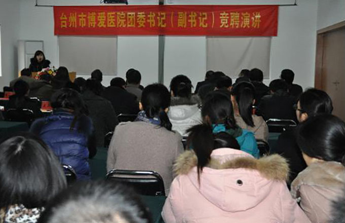 让有才者施展让有为者有位 我院公开竞聘团委书记 本站讯(记者蔡伟标陈梦)为进一步加强团委管理,充分发挥团委的战斗堡垒及广大团员青年的急先锋作用,12月22日,我院党委召开团委书记(副书记)竞聘演讲会。 22日下午,我院团委书记(副书记)竞聘演讲会在行政办公区会议室举行。会议由院党委委员、上一届团委书记周海平同志主持。中共路桥区委组织部、共青团路桥区委、区卫生局以及路桥街道团委领导出席了本次竞聘...2011-12-23381 -
