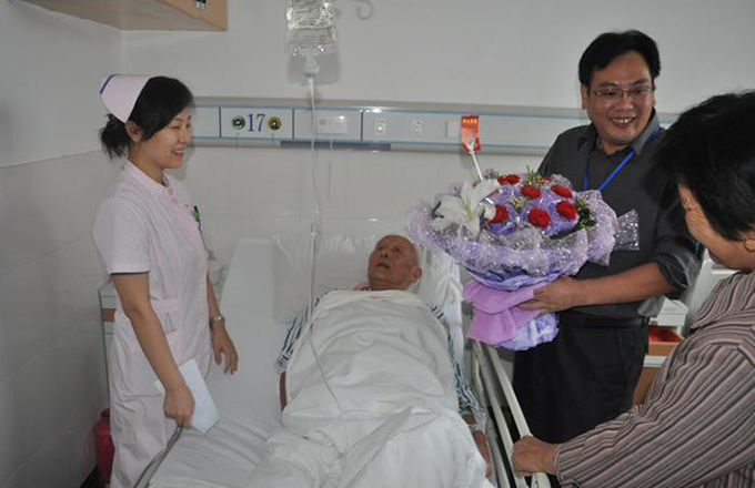 本站讯(记者蔡伟标)10月5日是中国传统节日——重阳节。当天院党委领导为90周岁以上的住院老人送上鲜花和节日祝福,让他们感受到浓浓的节日暖意。据悉,院党委自2009年开始慰问90周岁以上的住院老人,从未间断,受到患者及家属欢迎与好评。2011-10-08338 -