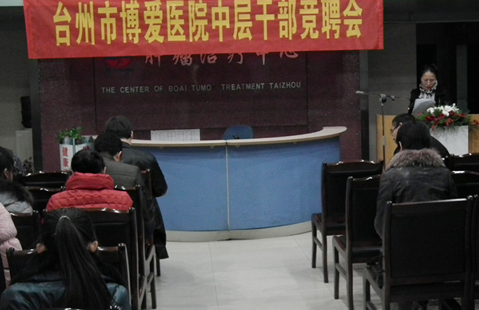 发表时间:2010-12-28下午03:24:19 本报讯(记者牟金辉见习记者盛鹏)12月27至30日,我院召开了中层干部竞聘会,会议将通过民主测评、演讲面试、领导班子综合评定等环节对我院的64名竞聘中层干部进行考评。 为进一步加强医院内部运行与管理,建立有激励、有改革、有活力、有创新的中层干部队伍,增强竞争意识、人才意识、管理意识,实现优质高效之管理目标。从12月开始,台州市博爱医院面向全...2011-10-06379 -