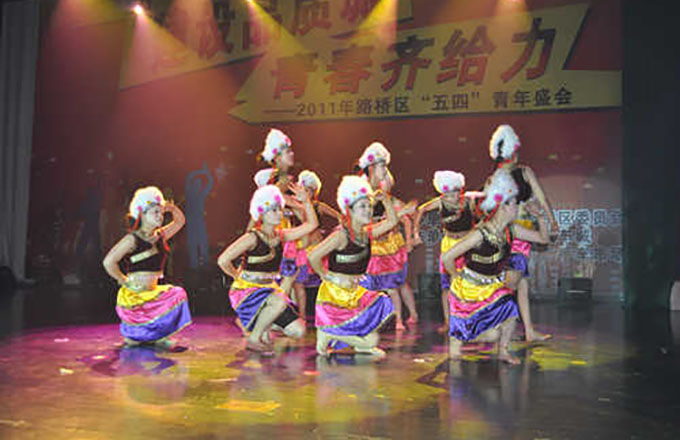 本站讯(见习记者陈梦)5月4日下午,由路桥团区委主办的“建设品质城,青春齐给力——2011年路桥区“五四”青年盛会”在路桥国际会展中心隆重召开。本次盛会节目丰富多彩,图为我院文艺队舞蹈节目《站在高岗上》代表路桥街道团委在本次盛会中登台亮相。2011-08-24383