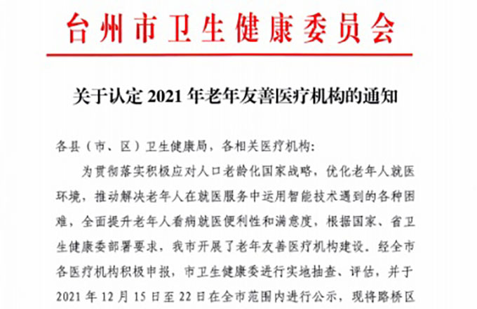 【喜报】我院被认定为“2021年老年友善医疗机构”