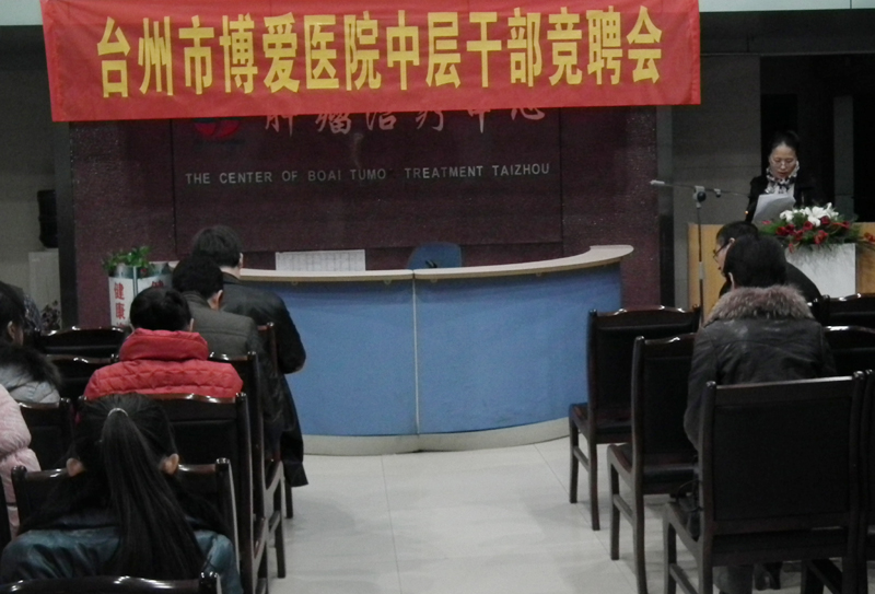 为进一步加强医院内部运行与管理,建立有激励、有改革、有活力、有创新的中层干部队伍,增强竞争意识、人才意识、管理意识,实现优质高效之管理目标。从12月开始,台州市博爱医院面向全院职工实行中层干部新一轮竞聘,根据医务人员结构和医院实际情况,制定出台了《中层干部竞聘上岗实施方案》,对18个名额的职能部门和46个名额的科室主任实行公开竞聘,公平、公正地录用德才兼备人员。