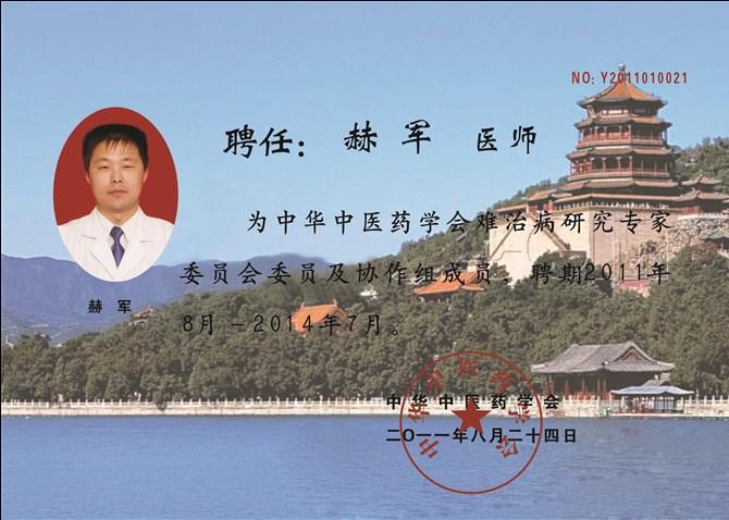 本站讯(记者 蔡伟标)近日,我院风湿病专科赫军医师被中华中医药学会聘任为难治病专家委员会委员及协作组成员,聘期为三年(2011年8月至2014年7月)。