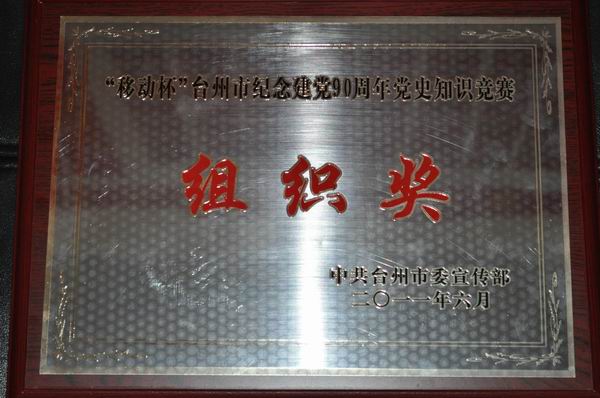 本站讯(通讯员 王志君 记者 蔡伟标)日前,由中共台州市委宣传部主办,台州市直机关工委、台州市委党史研究室、台州日报社、中国移动通信集团浙江有限公司台州分公司协办的“移动杯”纪念中国共产党成立90周年党史知识竞赛揭晓,我院党委喜获组织奖,蒋秋月等4名职工分获个人二等奖和优秀奖。