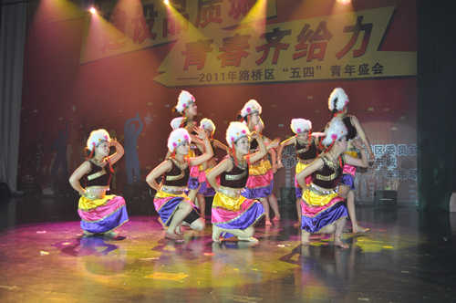 本站讯(见习记者 陈梦)5月4日下午,由路桥团区委主办的“建设品质城,青春齐给力——2011年路桥区“五四”青年盛会”在路桥国际会展中心隆重召开。本次盛会节目丰富多彩,图为我院文艺队舞蹈节目《站在高岗上》代表路桥街道团委在本次盛会中登台亮相。 |