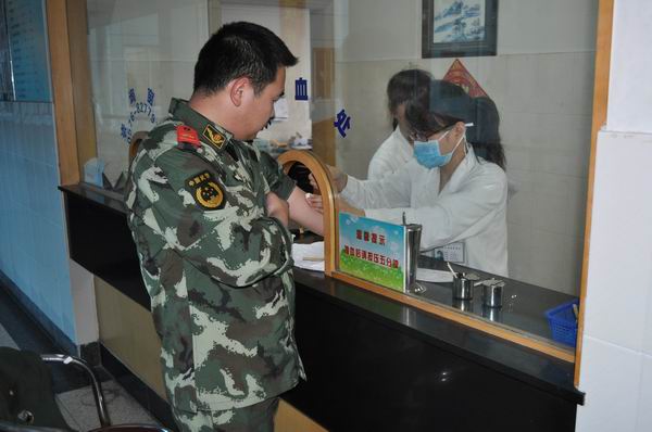 本站讯(记者 蔡伟标 见习记者 陈 梦)4月29日,为关爱武警官兵身体健康,我院为路桥区武警中队官兵及家属一行17人开展了免费体检并建立了个人健康档案。本次为武警官兵及家属开展的免费体检价值为500元每人,包含了血脂、血糖、血常规、肝功能、肾功能、肿瘤标志物、B(彩)超、心电图、胸透、测血压等。免费体检活动充分展现了我院一如既往的拥军情。