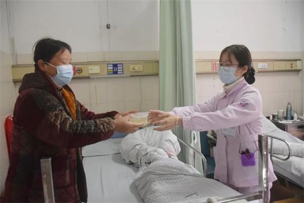 病房、走廊到处可见医护人员穿梭的身影,她们正在忙碌地给住院患者送上一份温暖的汤圆,一份家的味道。医护人员们对所有住院患者进行病情评估,与医生沟通,确定病情允许可以进食汤圆的病人数量后,为适合的病友送上一份节日的汤圆。