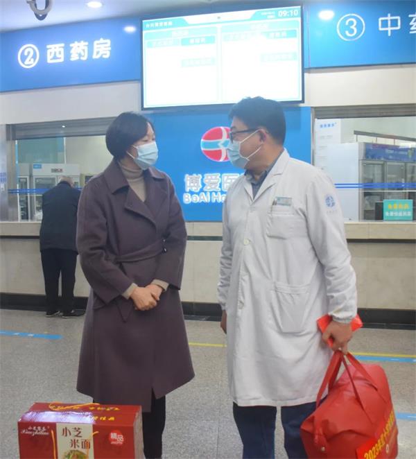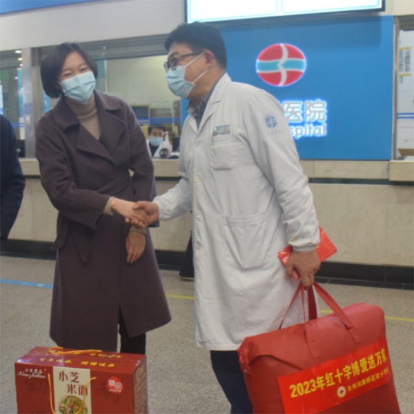 2月1日,新春伊始,路桥区副区长、区红十字会会长汤晶一行莅临台州博爱医院,慰问我区首例遗体捐献者王伦同志的儿子医院工会主席王万里,送去党和政府的关怀并致以新春的问候。区红十字会党组书记、常务副会长胡琳萍,区红十字会、路桥街道、台州博爱医院相关负责人陪同。