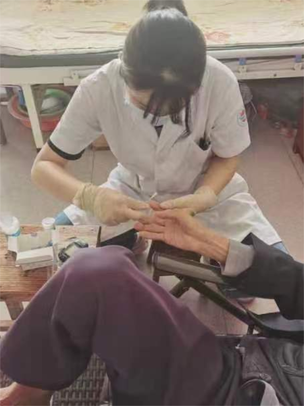 义工志愿者们来到敬老院,与老人们进行亲切谈心谈话、拉家常,为老人们提供免费的健康咨询,进行细致的量血压和测血糖服务,了解他们的日常生活和健康状况,叮嘱他们换季期间注意添减衣服。