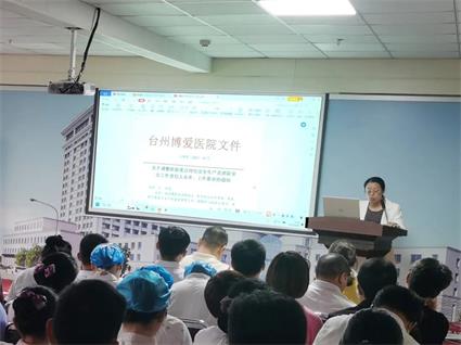 医院是群众看病就医、救死扶伤的重要公共场所,服务对象情况非常特殊,人员流动性大,人员密集程度高,一旦发生事故,特别是消防事故,极易导致重大人员伤亡,后果不堪设想。为了防止相关事故发生,4月20日,台州博爱医院医共体召开医院消防安全警示大会,会议由医院分管领导陈春燕主持。