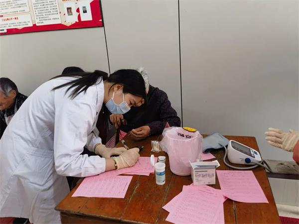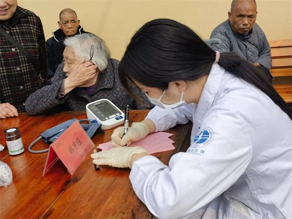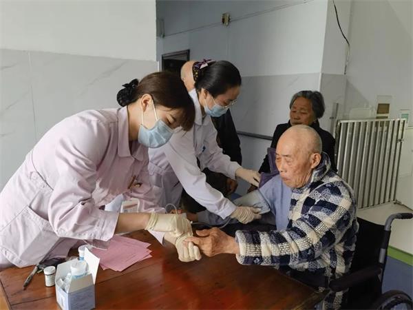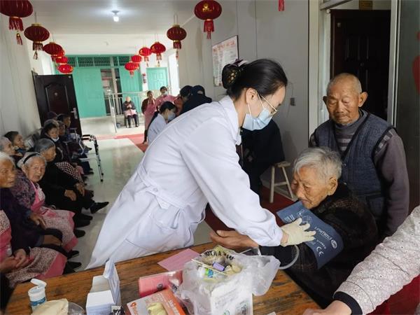 医护人员细心地为老人们进行了量血压、测血糖等常规检查,主动帮助一些身着厚衣的老人穿脱外层衣物。