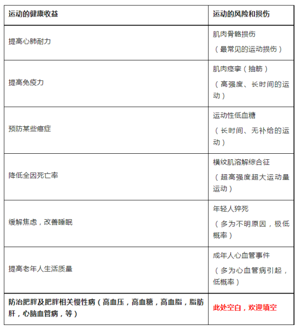 Exercise is Medicine. 翻译为:运动是良药,我觉得更贴切些。运动→健身=药物→治病?运动方式=药物名称?运动强度+运动时长=药物剂量?运动频次=服药频次?每日3次?每日1次?隔日1次?每周1次?既然运动是药物,那么,除了防病治病功效,它应该有一些副作用、不良反应、禁忌症,是的,我们一起看看。