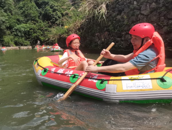 飞腾峡漂流飞瀑腾跃,峡深谷秀,水源源于海拔900米高山清泉,河道全程约3公里总落差128米,时而惊险、时而平缓,约60分钟的快乐航程,让全体职工感受数十次的腾跃起落,刺激不断,尖叫不停。