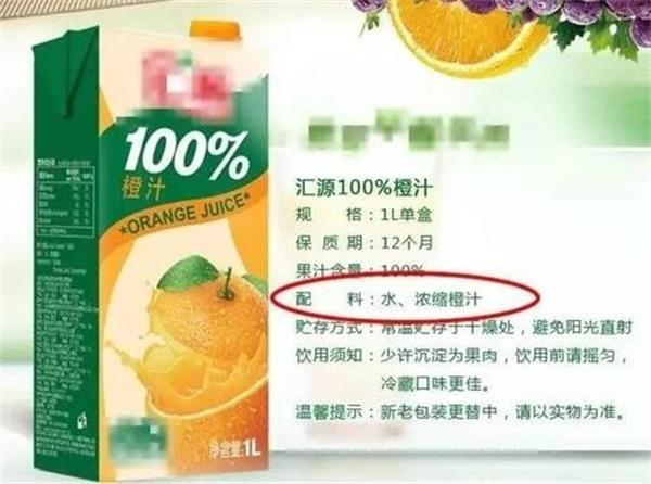 上图这款“100%橙汁”配料:水,浓缩橙汁。果真如此,挺好。
