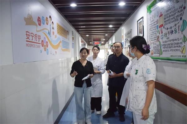 指导专家组随地走访了老年医学科门诊、安宁疗护病区等地,从病区设置、人员配置、规范化操作、配套设施等方面对安宁疗护开展情况、康复护理床位数情况进行督导检查并给予指导性意见。指导专家组查看了老年医学科规章制度及岗位职责。