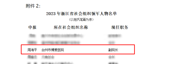 周海平,台州博爱医院党委副书记、副院长,先后荣获路桥街道优秀党组织书记、路桥区“百优标兵”身边好党员、台州市高级红领英才师、浙江省新时代万名好党员等荣誉称号。