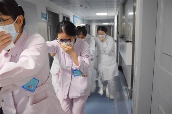 一病区病房因电器老化“起火”,值班护士发现火情后冲到走廊按下最近的消防报警按扭报警,随即通知护士长,护士长将火情报告保卫科等相关部门及总值班,并疏导员组织住院患者撤离。