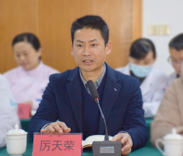 路桥区卫健局党委委员厉天荣代表区卫健局及台州博爱医院全院职工对各位专家来院检查指导表示热烈欢迎和衷心的感谢。