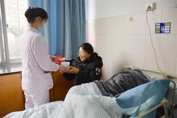 医护人员们对所有住院患者进行病情评估,与医生沟通,确定病情允许可以进食汤圆的病人数量后,为适合的病友送上一份节日的汤圆。