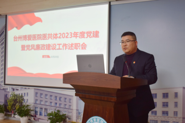 2月20日,台州博爱医院医共体召开2023年度党建暨党风廉政建设工作述职会议。医共体党委班子全体成员,各党支部支委会成员,清廉监督员参会。
