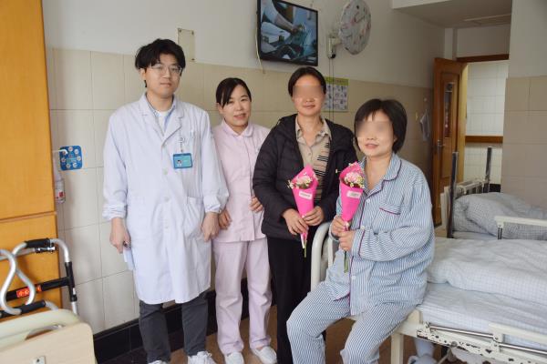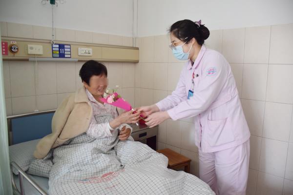 3月8日,三病区的医护人员在护士长郑岚的带领下,将精心准备的鲜花,送到病房每位女性患者手中。“阿姨,这是我们给您准备的节日鲜花,祝您早日康复!”一束芬芳的鲜花,一句温馨的话语,承载着医护人员对患者朋友深深的祝福与关爱。