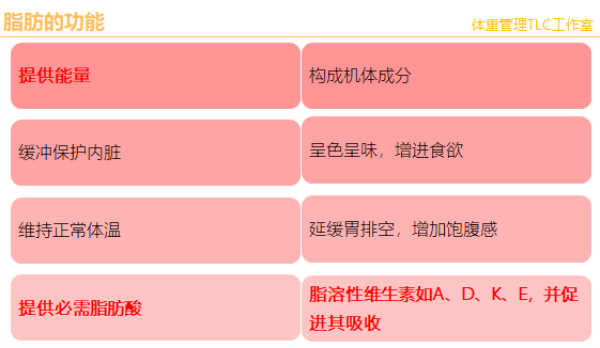 脂肪,由1分子甘油和3分子脂肪酸组成,所以叫甘油三酯。各种各样的脂肪酸,组成了各种各样的脂肪,最粗糙的分类,将脂肪分为常温下液体的油、常温下固体的脂。脂肪是人体的能源,正如汽车的汽油、柴油、燃气等能源;人也一样,脂肪不仅是人类的日常消费能源,它还是人类防备饥荒的战略储备能源。脂肪不仅是能源,还有许多其它的功能、用途,我梳理出8项,请看图片。