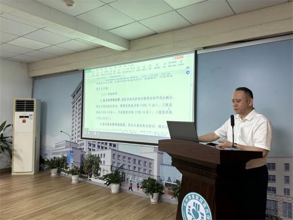医共体常务副理事长、总院执行院长金智超通报2023年度区域医疗服务共同体绩效考核结果及2023年度区基层医疗卫生机构补偿机制改革绩效考核结果,逐步梳理存在的问题。