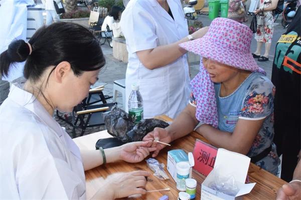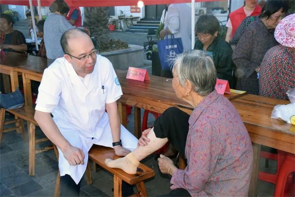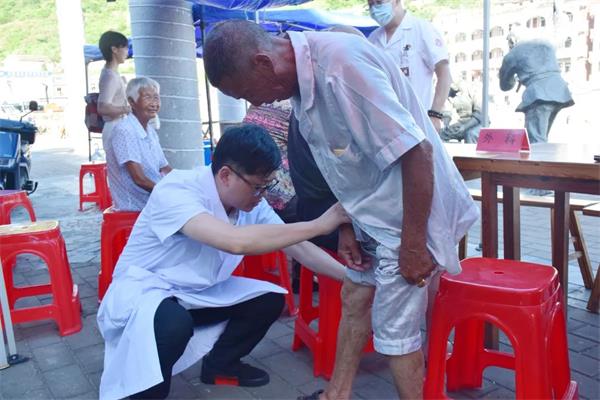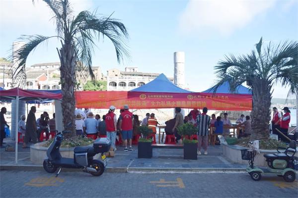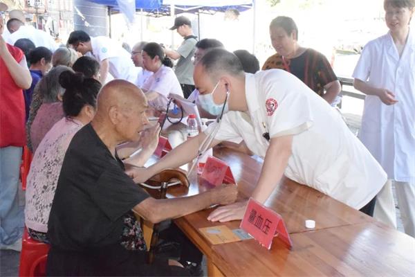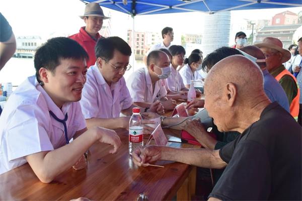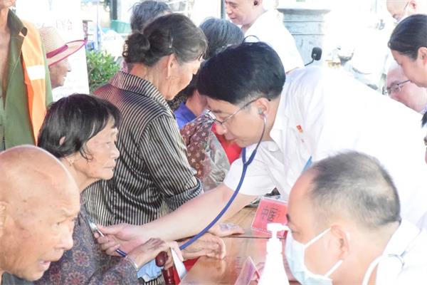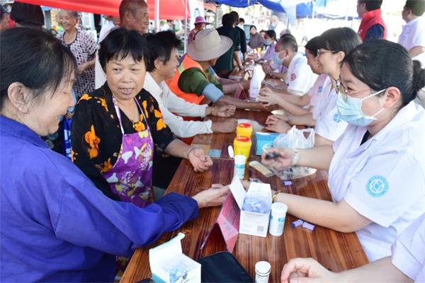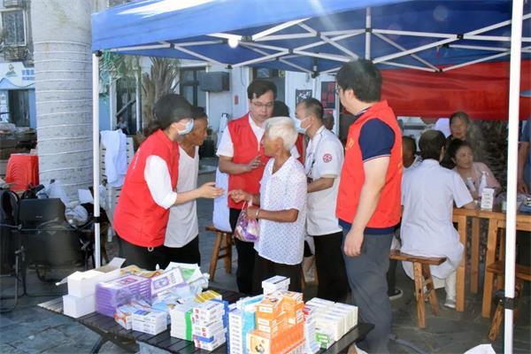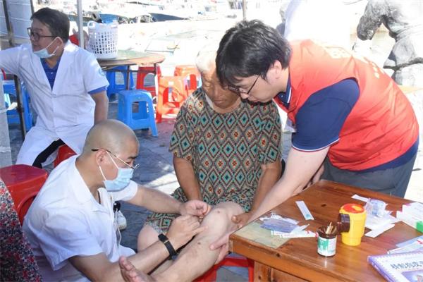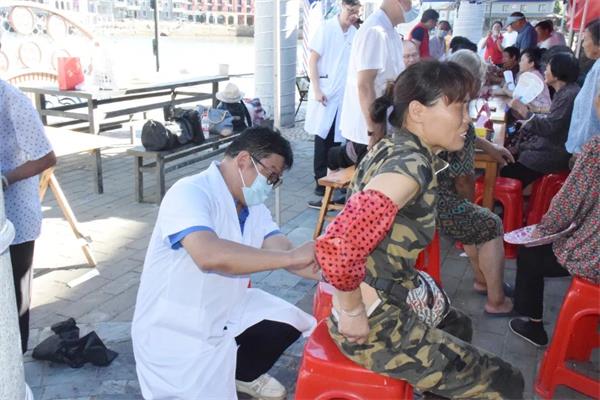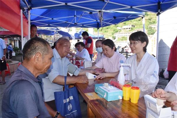 大陈岛作为海岛村,对外交通全靠渡轮。交通的不便利让岛上居民就医成了难题,特别是为了建设大陈岛的老垦荒队员们及岛上留守的老人。广场上,党员志愿者们为岛上的居民进行血压、血糖测量,为他们解读测量结果,根据结果调整制定用药方案,同时进行高血压、糖尿病等常见慢性病防治健康教育,传授健康知识,包括疾病预防、合理膳食、日常保健等方面,免费送医送药。
