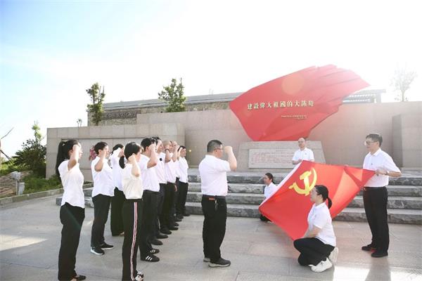 灿烂的阳光下,垦荒纪念碑屹立于凤尾山之巅,在医共体党委副书记、台州博爱医院医共体总院院长干军辉的领誓下,党员同志们矗立于碑前列队整齐、佩戴党徽、举起右拳,以饱满的热情和昂扬的姿态,面向党旗庄严宣誓。庄严的仪式、铿锵的誓言、坚定的承诺,让党员们接受了一次深刻的精神洗礼,表达了为党的事业、人民的健康奋斗的决心和信念。