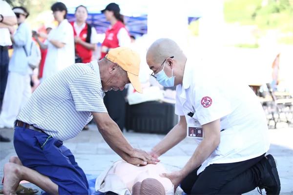 专家们还在现场进行“心肺复苏”培训,在杭州中西医结合医院专业院长李治的带领下,医护人员一一演练急救技能,并普及心肺复苏、急救知识。