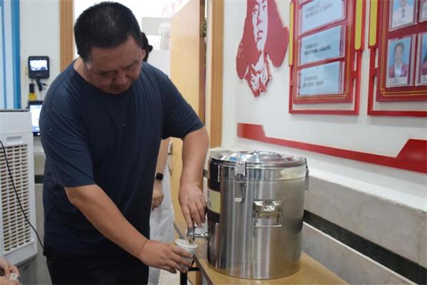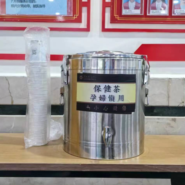 在台州博爱医院门诊大厅内,一桶精心熬制的酸梅汤散发出诱人的清香。市民朋友们只需来到门诊大厅,即可免费品尝到这份清凉好礼。医院的工作人员还贴心地准备了小杯子,方便大家随时取用。