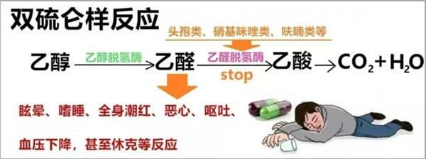 部分头孢类药物,当然不限于头孢类,抑制乙醛脱氢酶的活性,让那些本来二种酶都活跃的善饮者,变成了喝酒红脸的乙醛脱氢酶缺乏者。于是乎,出现了乙醛蓄积中毒,也就是双硫仑样反应。如果仅限于“脸红心跳、全身瘙痒、恶心呕吐、头晕目眩”这些一般症状,还能勉强接受。如果症状严重,出现血压下降、呼吸困难、意识模糊,甚至休克,危及生命,有谁还能接受?特别注意:原本喝酒脸不红、心不跳的善饮者,此时已是喝酒红脸的弱鸡,所以,别逞强!别搞事!头孢与酒,还是绕道而行、避而远之为好。