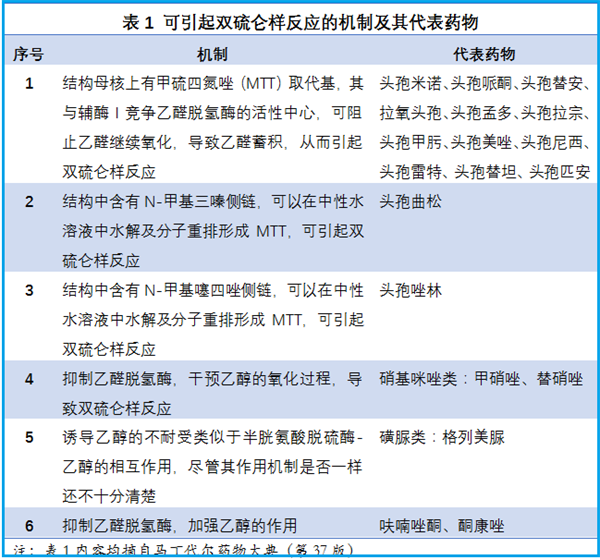 不能与酒同服的原因很多、涉及药物很多,本文仅指可能出现双硫仑样反应的药物。与双硫仑有类似化学结构的药物,比如有甲硫四氮唑基团或甲基三嗪侧链等等的药物,与酒同服,抑制、阻断乙醛脱氢酶的活性和作用,都有可能出现双硫仑样反应,亦即乙醛中毒。主要有:头孢菌素类、硝基咪唑类、磺脲类。头孢哌酮报告最多,可能最为敏感,请注意。详细清单,看图片吧。