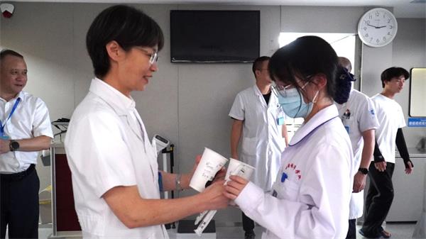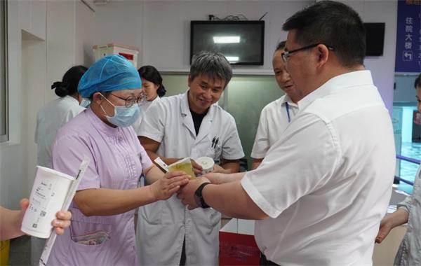 院领导深入医院各科室及病区,将精心准备的500份解暑饮品送到各个岗位的职工手中。他们不仅送上了清凉慰问品,更传递了医院对员工的深切关怀与问候,提醒大家在工作中注意安全,做好防暑降温措施,提高自我防护能力。