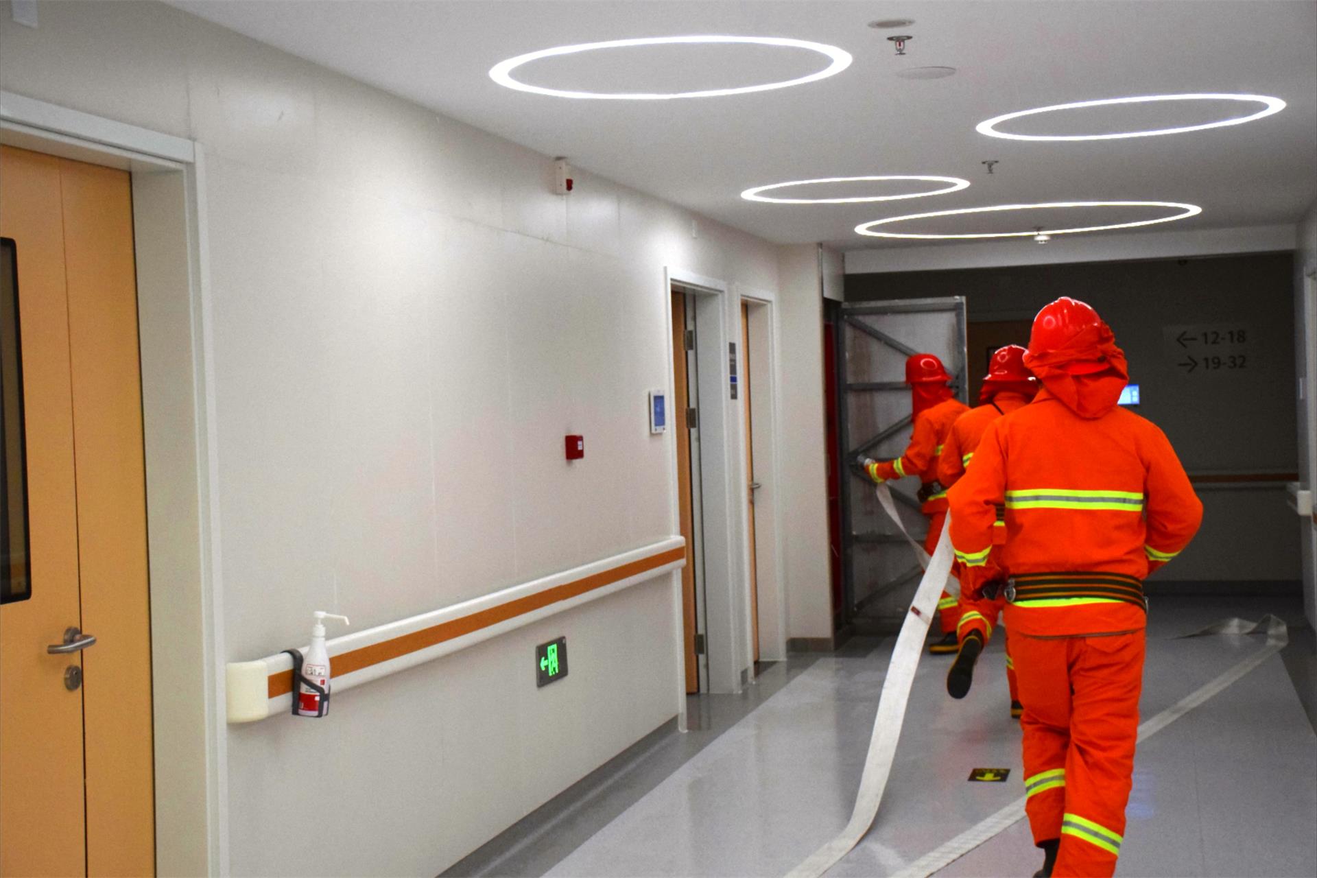 其他人员也在疏散员指导下,按照手捂口鼻、弯腰、靠墙、降低重心靠右走的要求,迅速有序地从安全出口撤离。