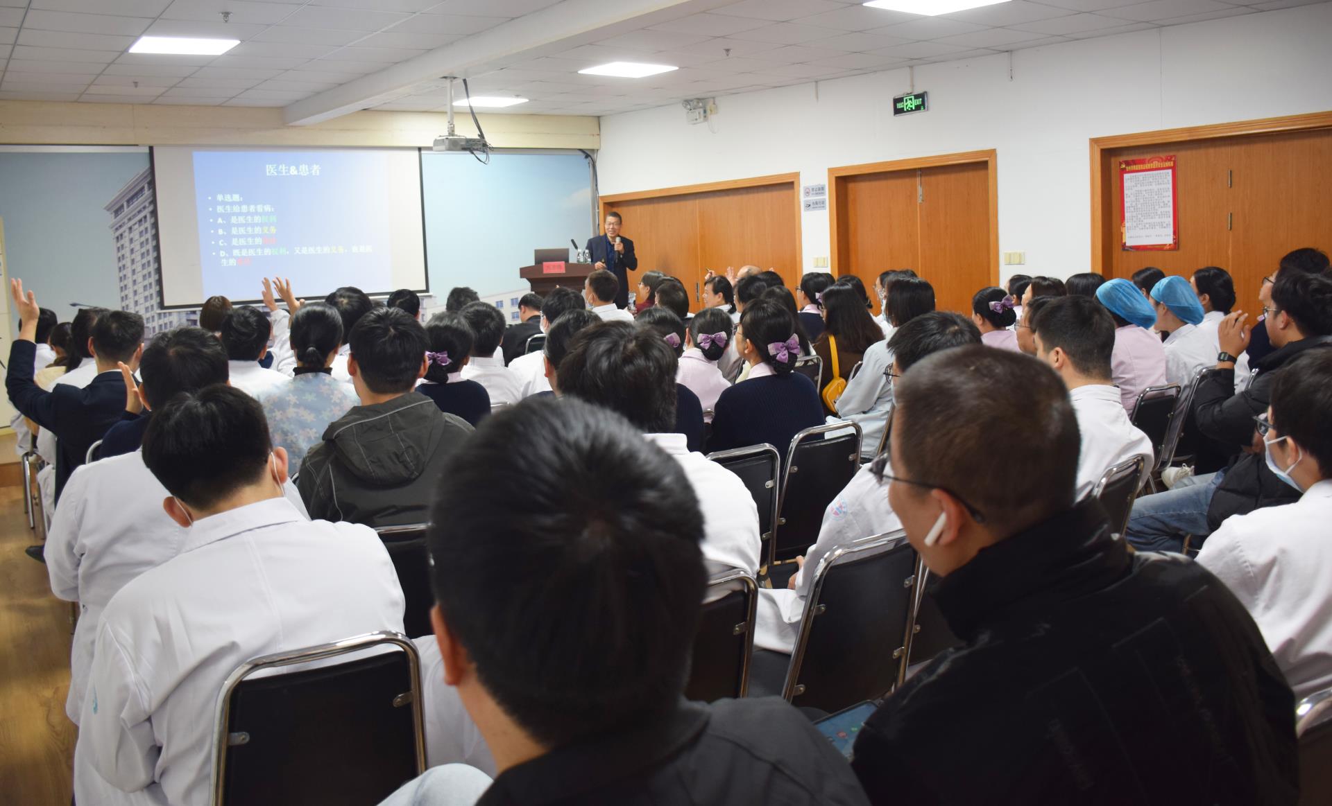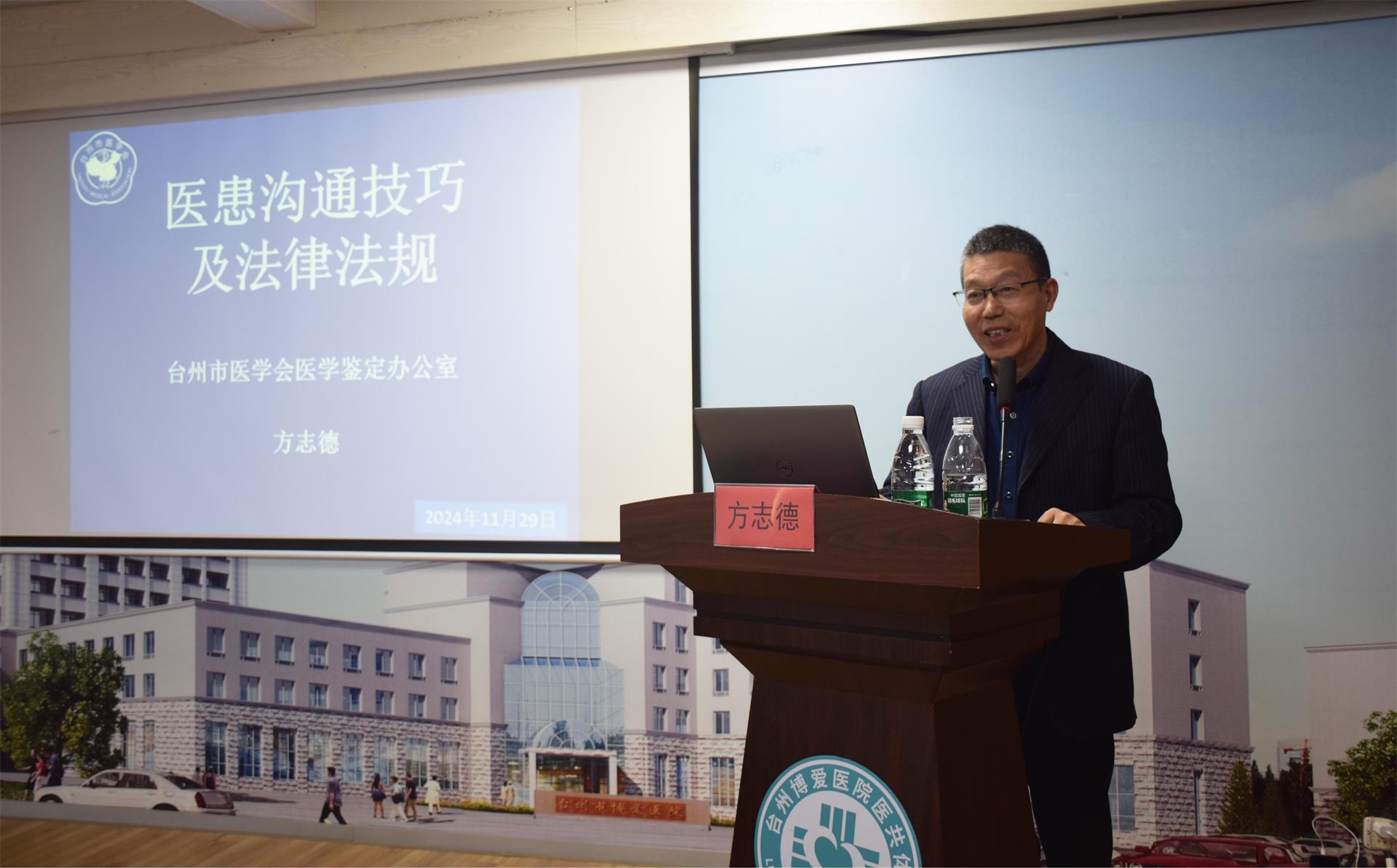 为进一步提升全院医务人员医患沟通能力,构建和谐医患关系,加强医学人文关怀,全面提高医疗服务的质量和水平,11月29日下午,台州博爱医院特邀医鉴办主任、台州医药杂志编辑部主任、台州市医学会副秘书长,台州市政协委员方志德开展《关于医患沟通技巧及相关法律法规》专题培训。会议由我院副院长吴晓君主持,医院全体医务人员共计100余人齐聚一堂,共同聆听了这场知识盛宴。