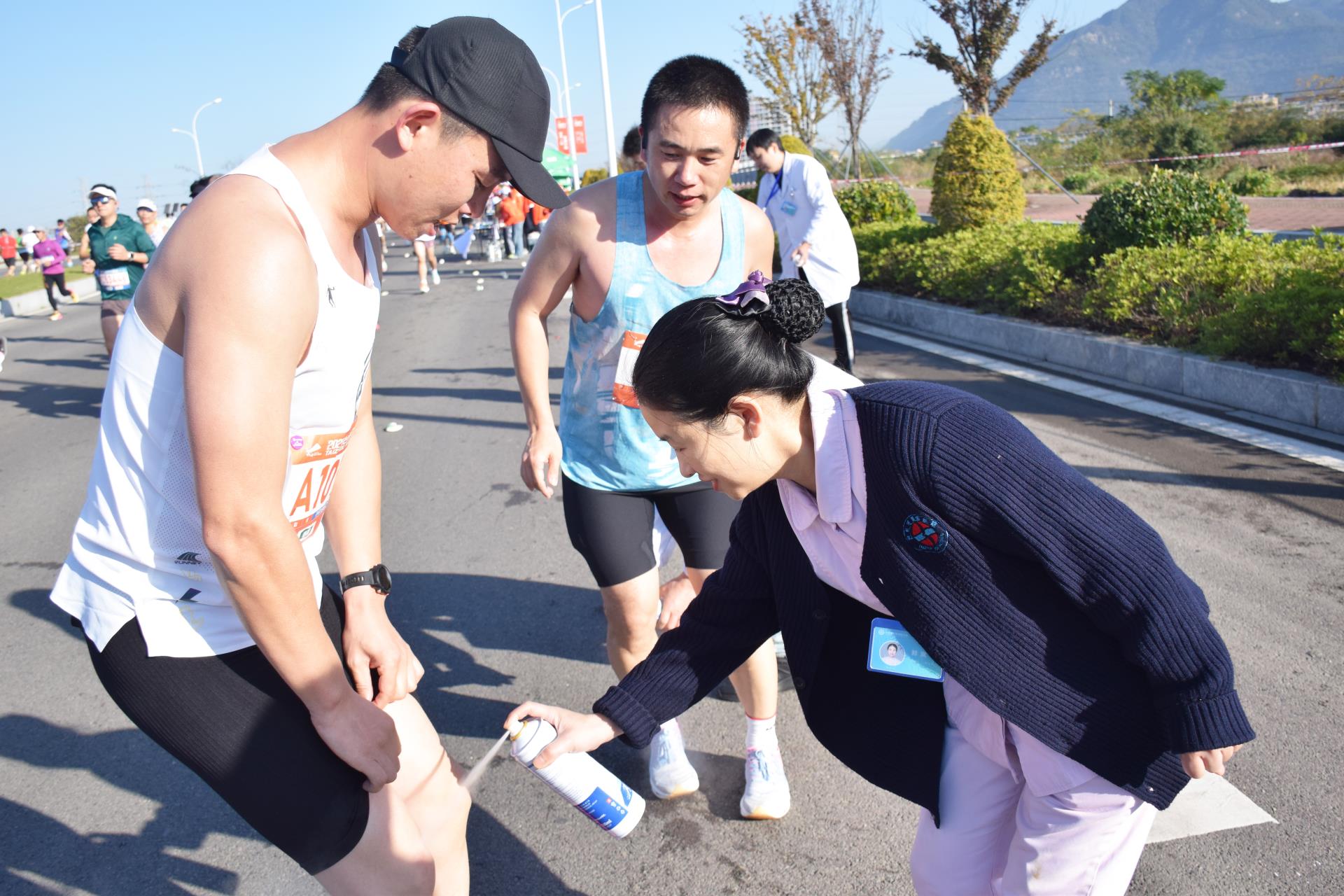 除了在现场提供医疗保障的团队人员外,我院还有多名医务人员以跑者身份积极参与了台马。他们不仅展示了医务工作者的健康形象,更传递了积极向上的生活态度,彰显了“勇于挑战、不惧艰难”的博爱拼搏精神。