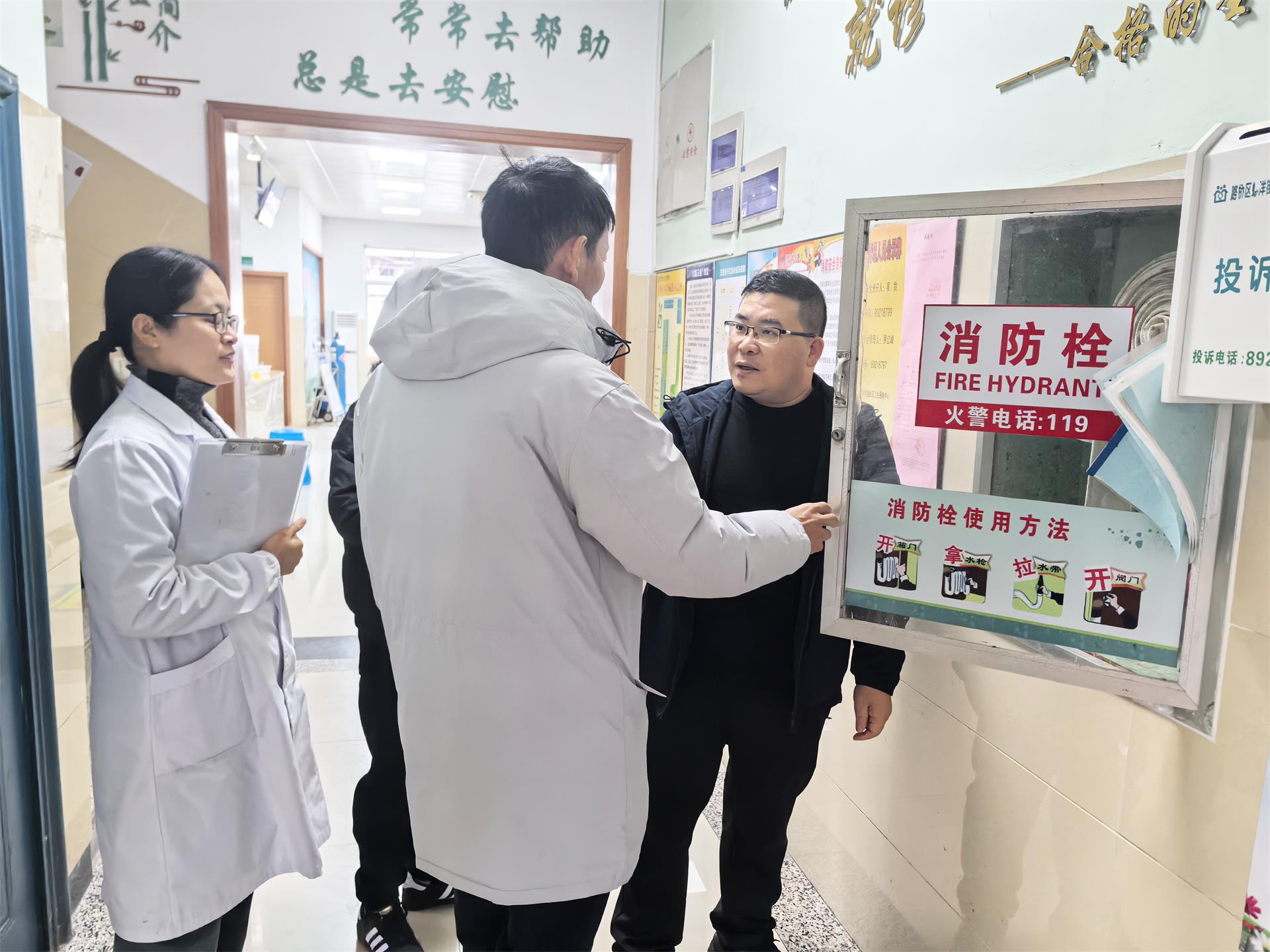 保障部相关负责人在台州博爱医院医共体党委副书记、总院院长干军辉的带领下,先后深入走访了医共体总院及三家分院,对配电系统、给排水系统、燃气系统、消防安全等进行了全面细致的检查。区域涵盖消控中心、高压配电间、中心供氧站、消防泵房、食堂、病房等,重点检查了消防器材配置是否到位且完好有效、各类消防设施设备是否运转正常、疏散通道及安全出口是否畅通、用水用电是否规范、安全生产相关台账资料是否齐全等内容。在检查过程中,干军辉强调要时刻保持对消防安全隐患的高度警觉,加强日常巡查,确保医院的安全稳定。