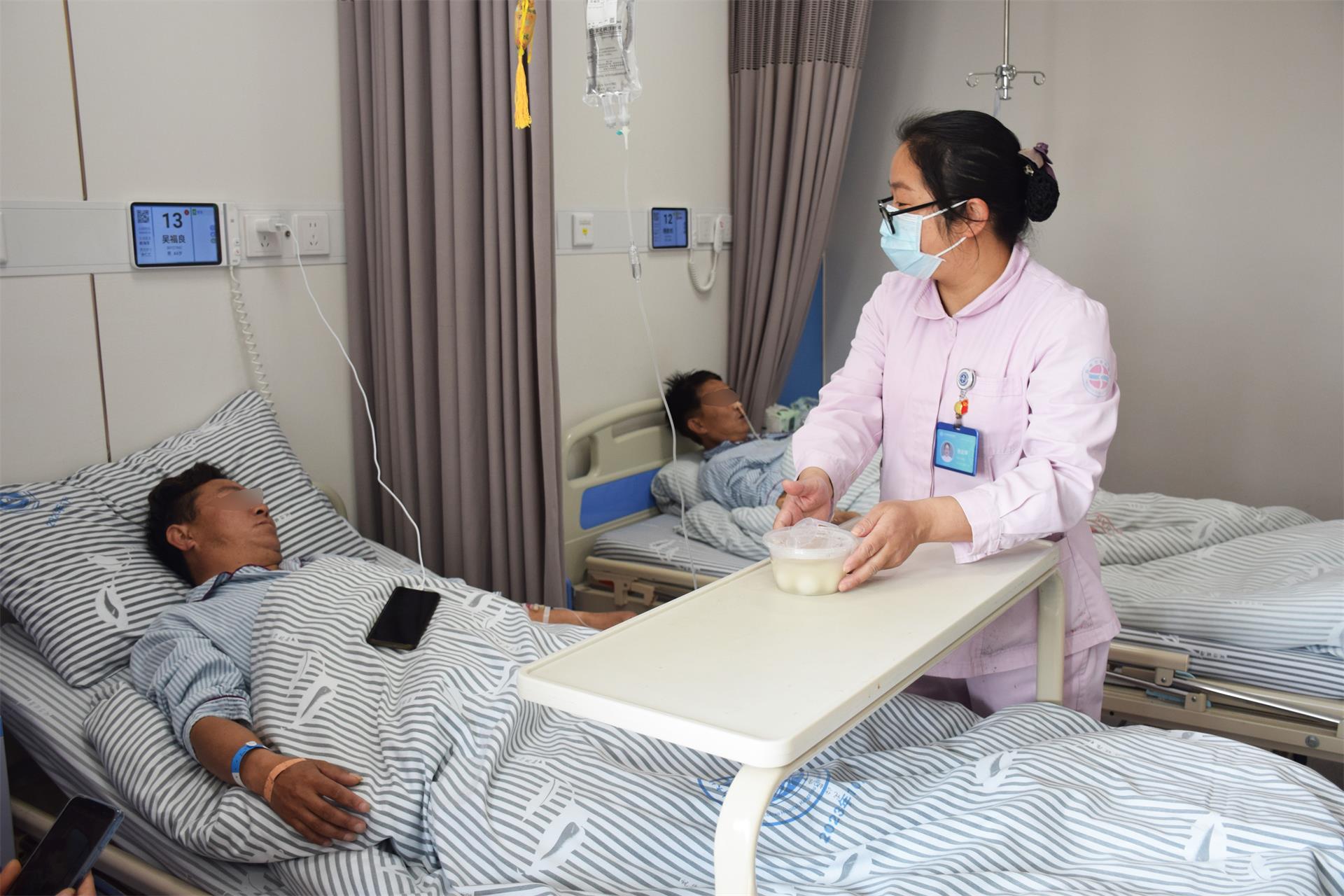 医院的病房与走廊间,医护人员忙碌的身影随处可见。她们手捧一碗碗热气腾腾的汤圆,穿梭于各个病房之间,为患者送上了一份特别的节日温暖,仿佛将家的味道带到了医院。