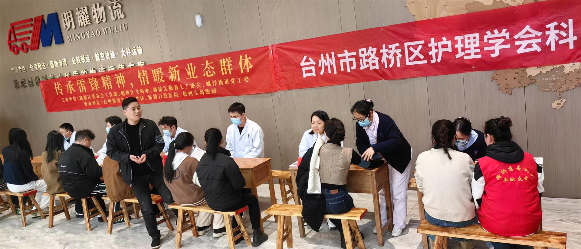 活动当天,台州博爱医院医共体健康义工服务队组织了内科、康复理疗科、妇科、泌尿外科、骨科等医生专家及护理团队来到螺洋街道鸿铭物流园区开展义诊服务。