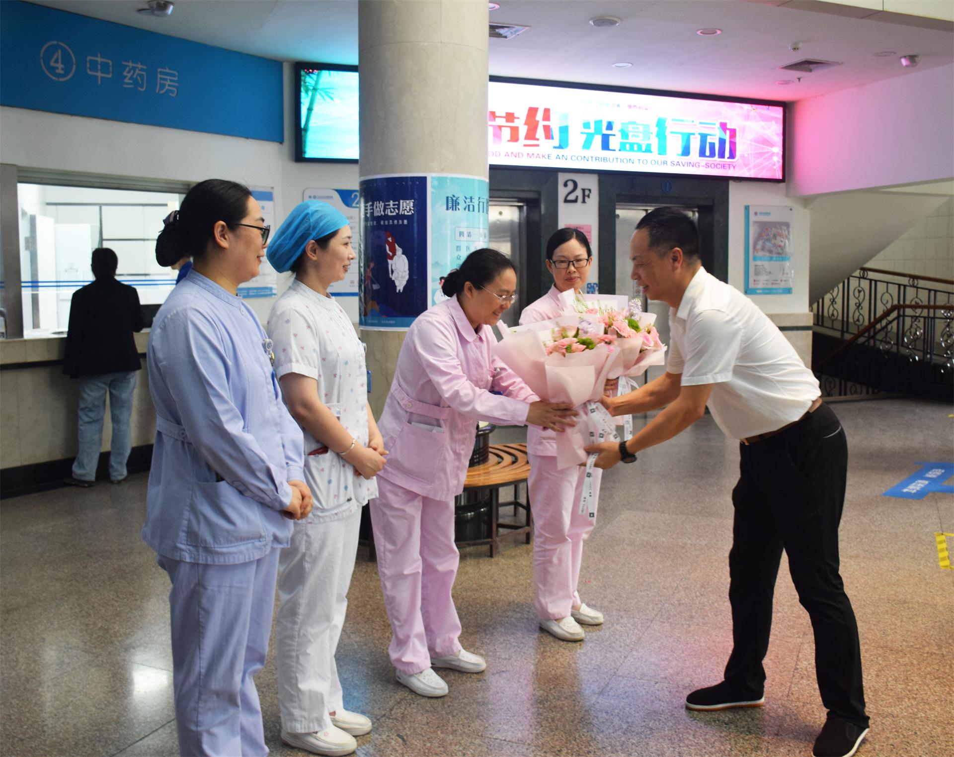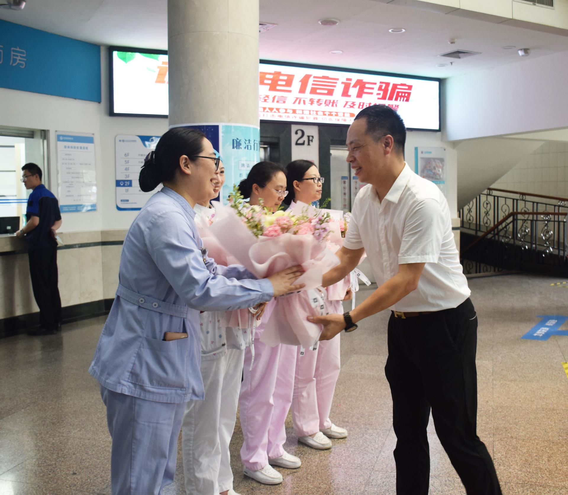 每到一处,慰问组都为护士们送上节日祝福与鲜花、慰问品,亲切地询问护士们的工作和生活情况,感谢其长期以来在一线护理岗位上默默奉献和辛勤付出。